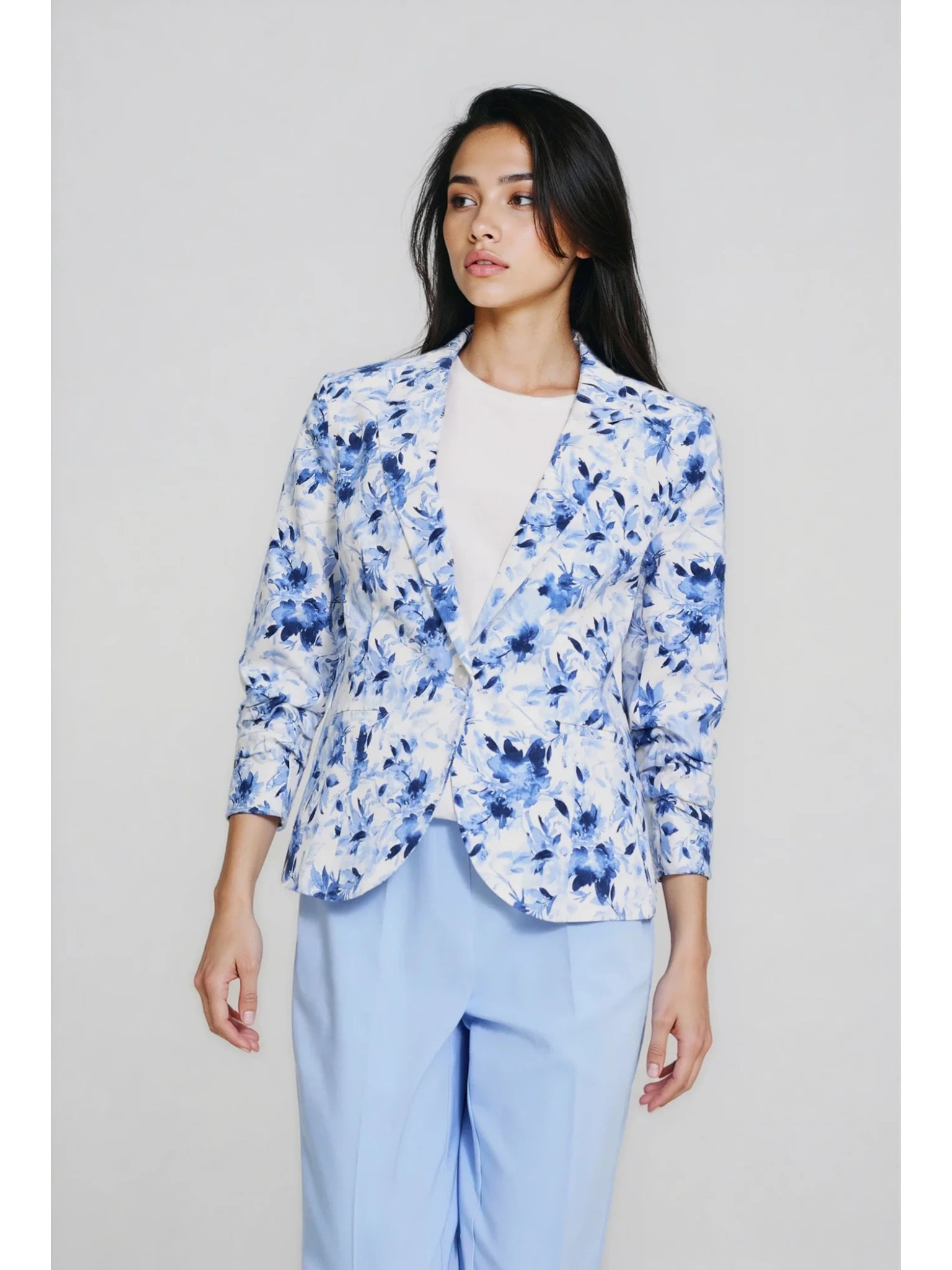 Blézer gyűrt ujjakkal világoskék Moodo