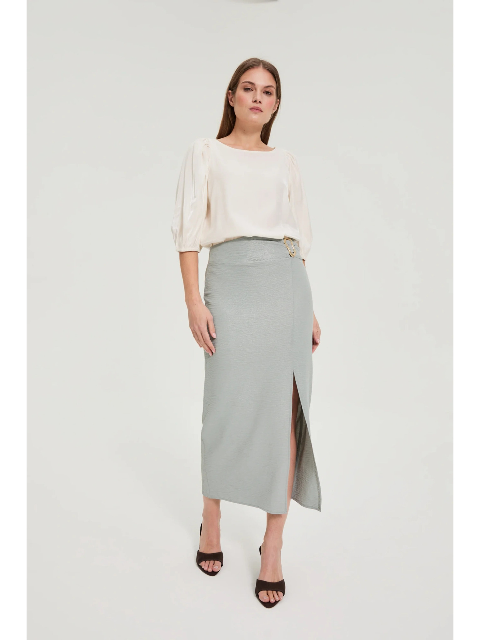 Térdig érő sötét bézs ceruzaszoknya Moodo