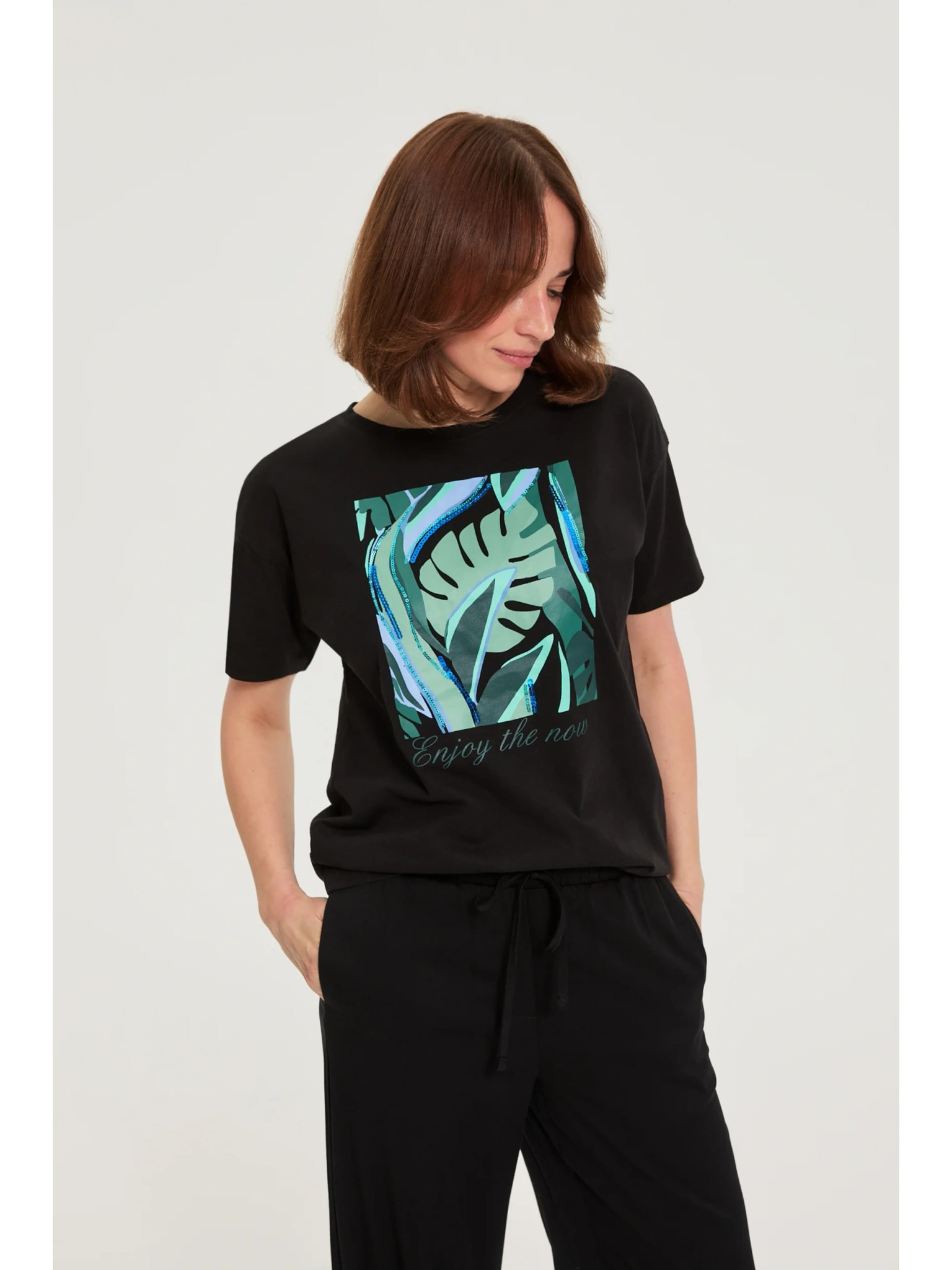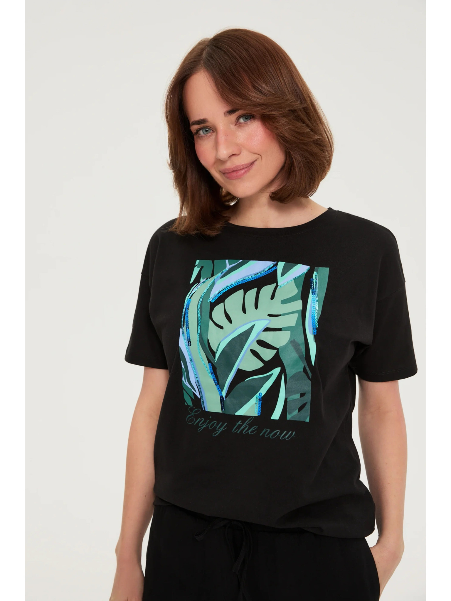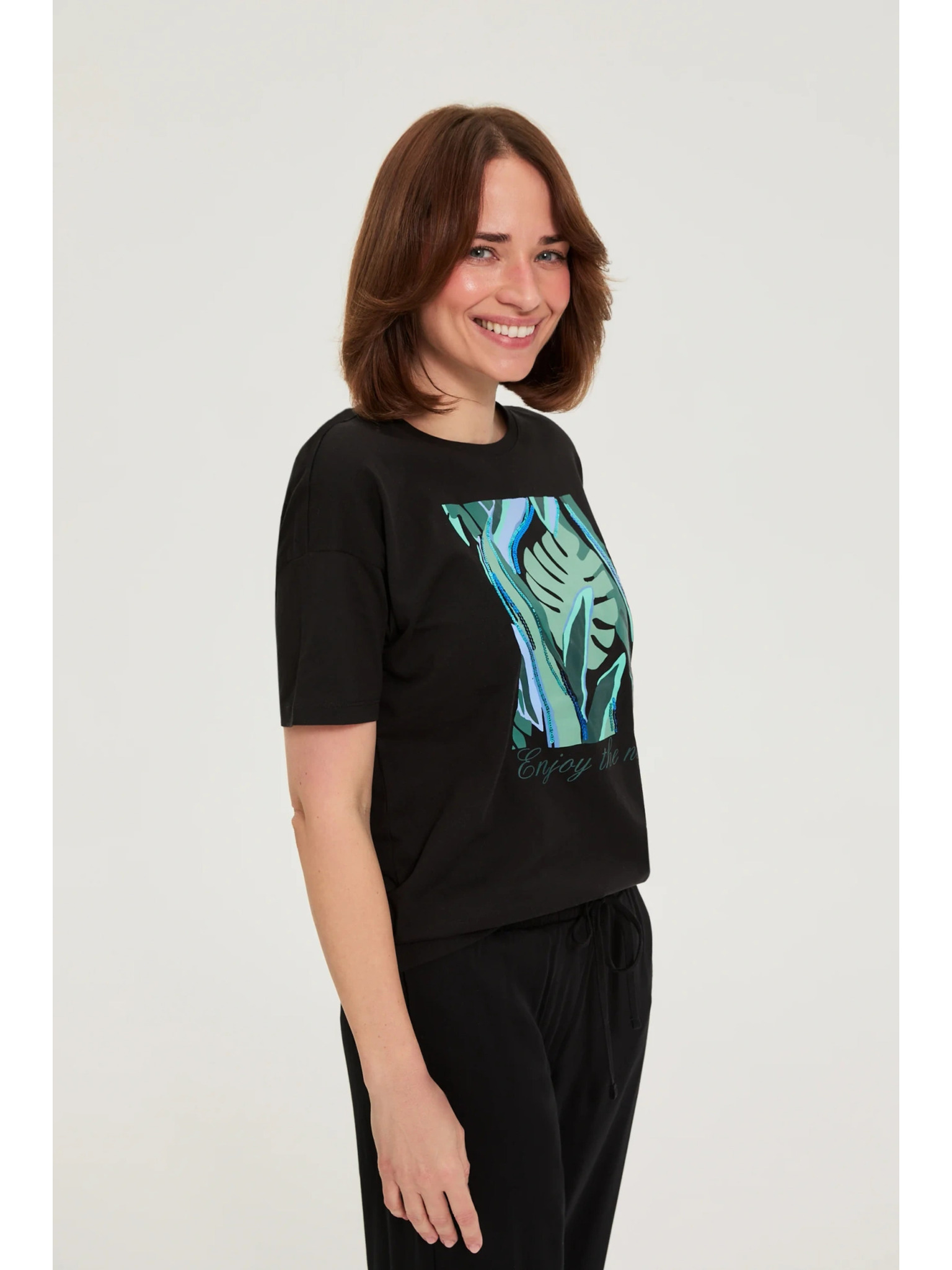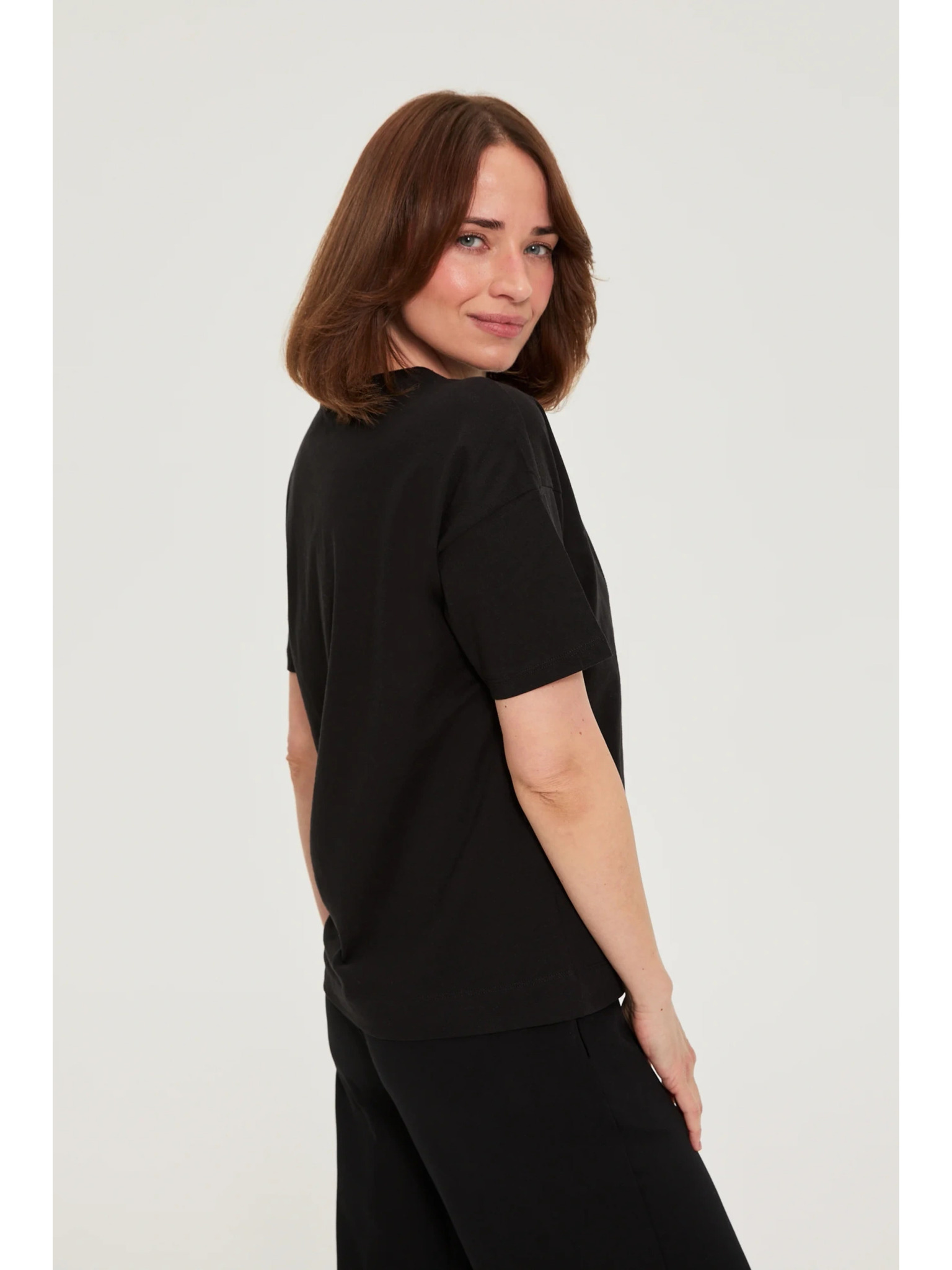 Pamutból készült blúz V-nyakkal fekete Moodo