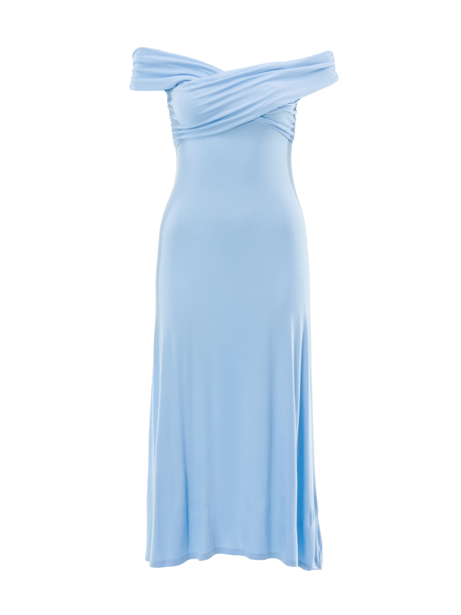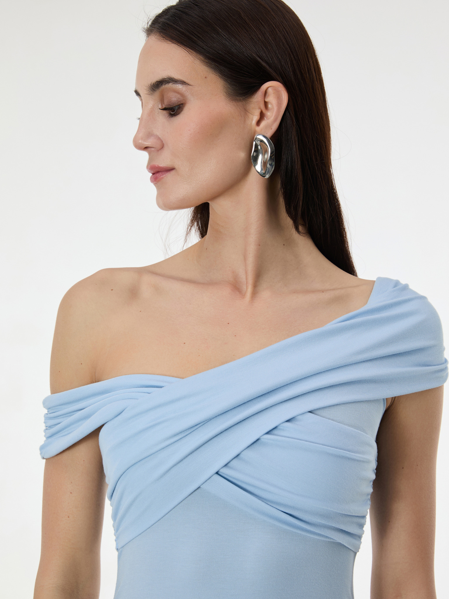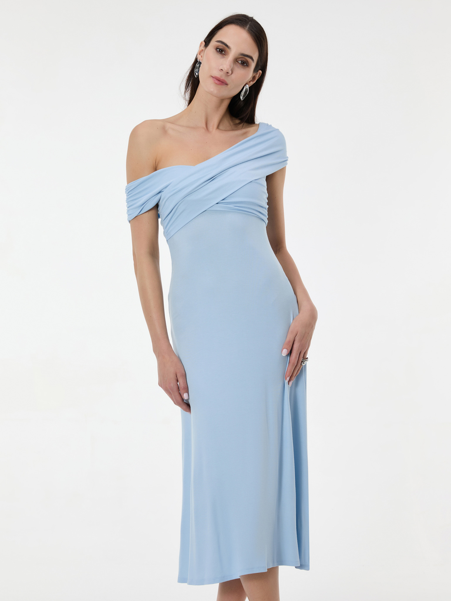 Hosszú ujjú rakott nyakkivágású ruha - világoskék Numoco ISABELLE ISABELLE