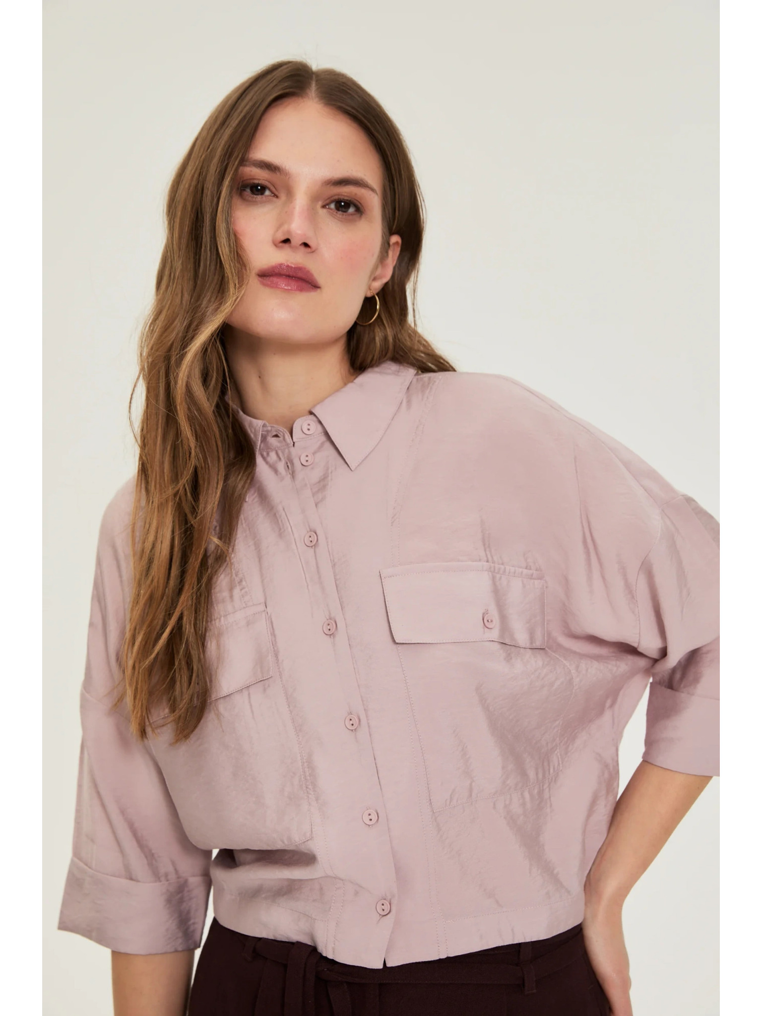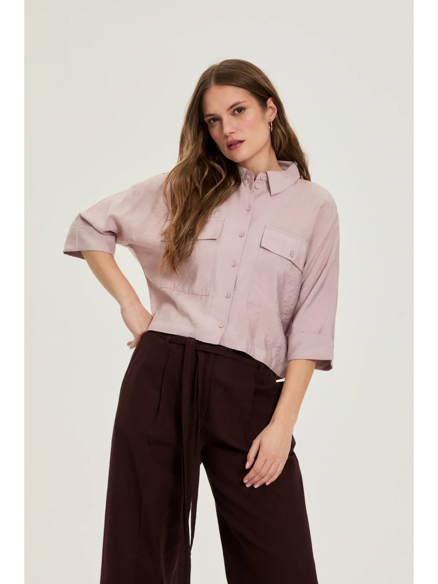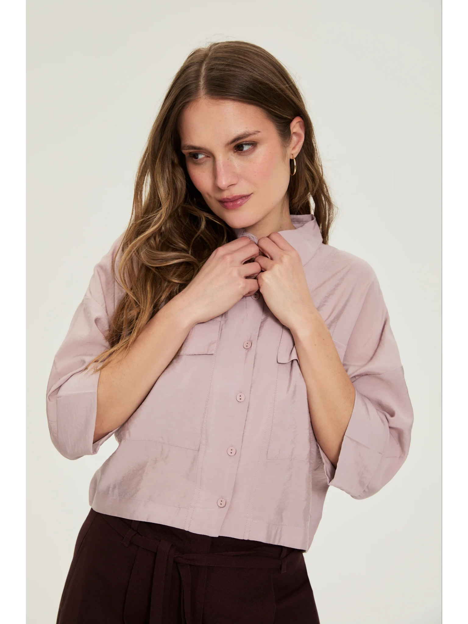 Fukszia ing ráncolt ujjakkal Moodo