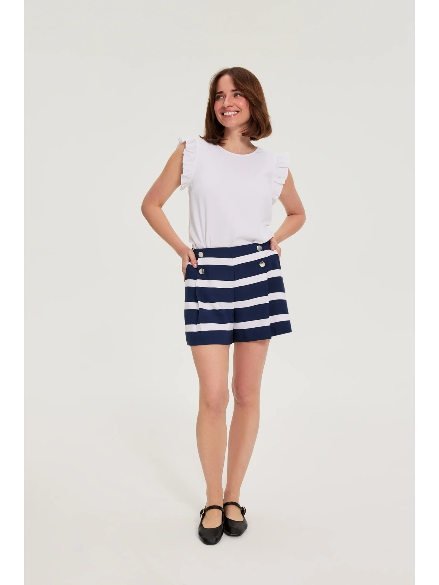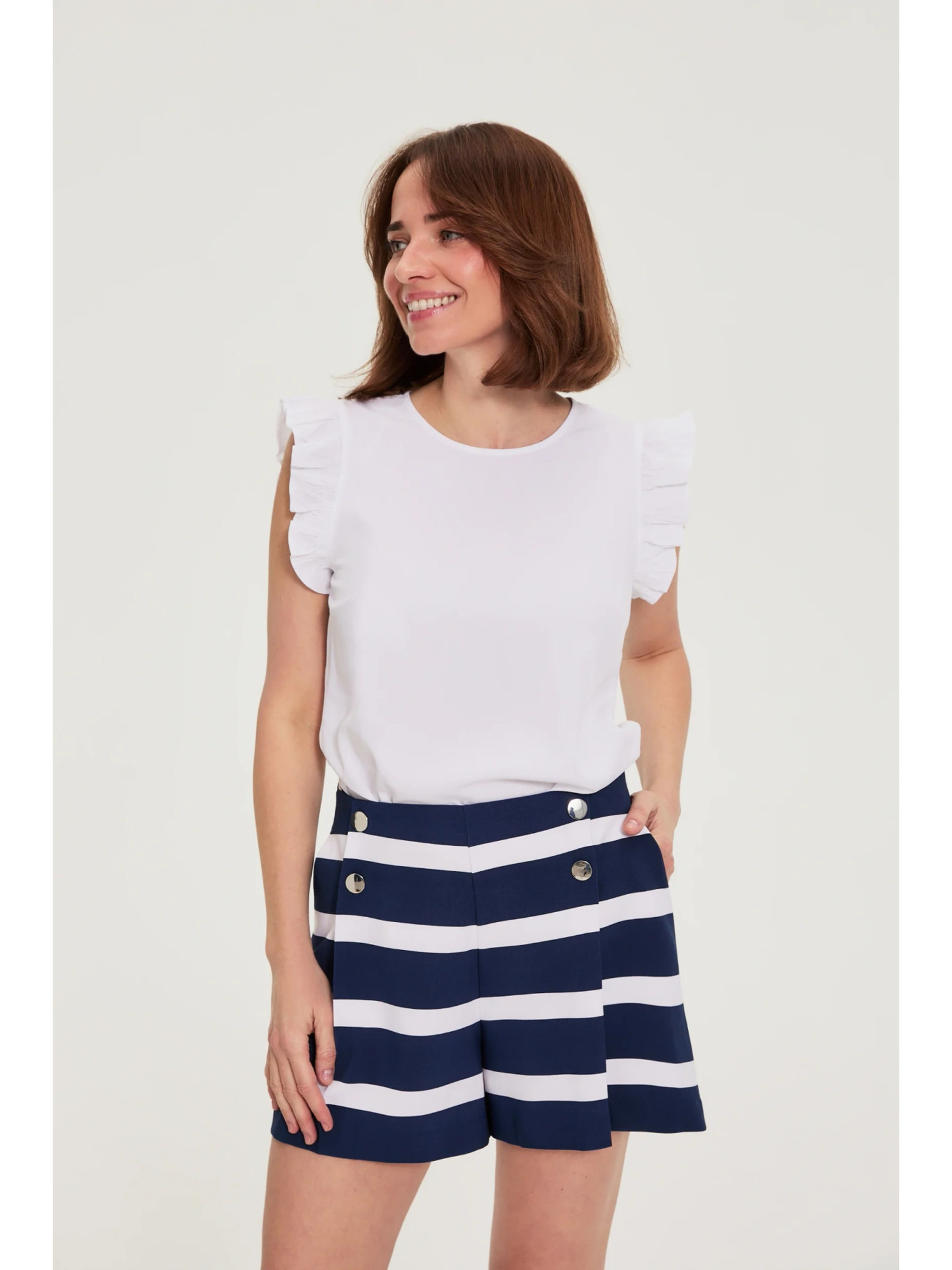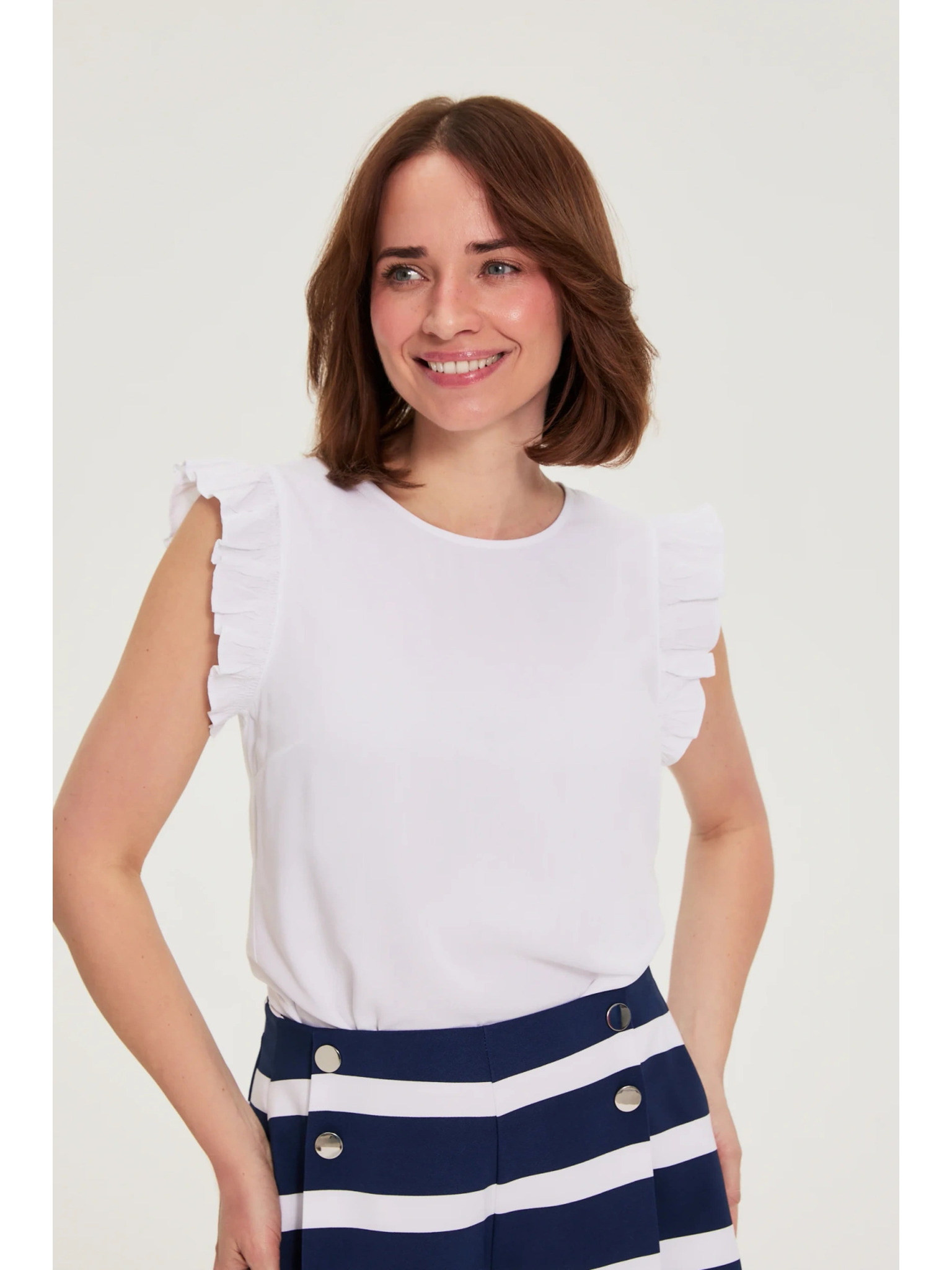 Fehér felhajtott ujjú blúz Moodo