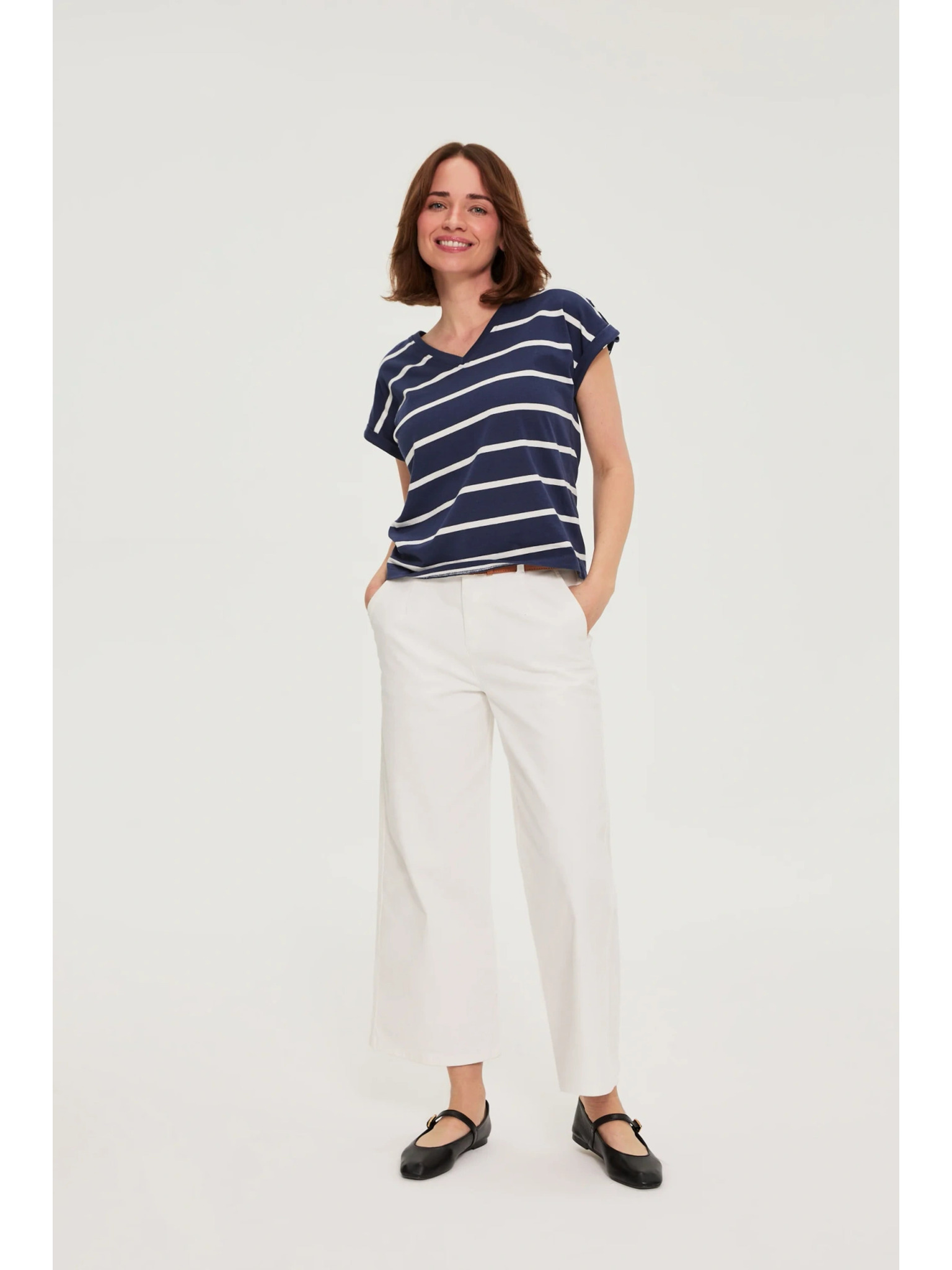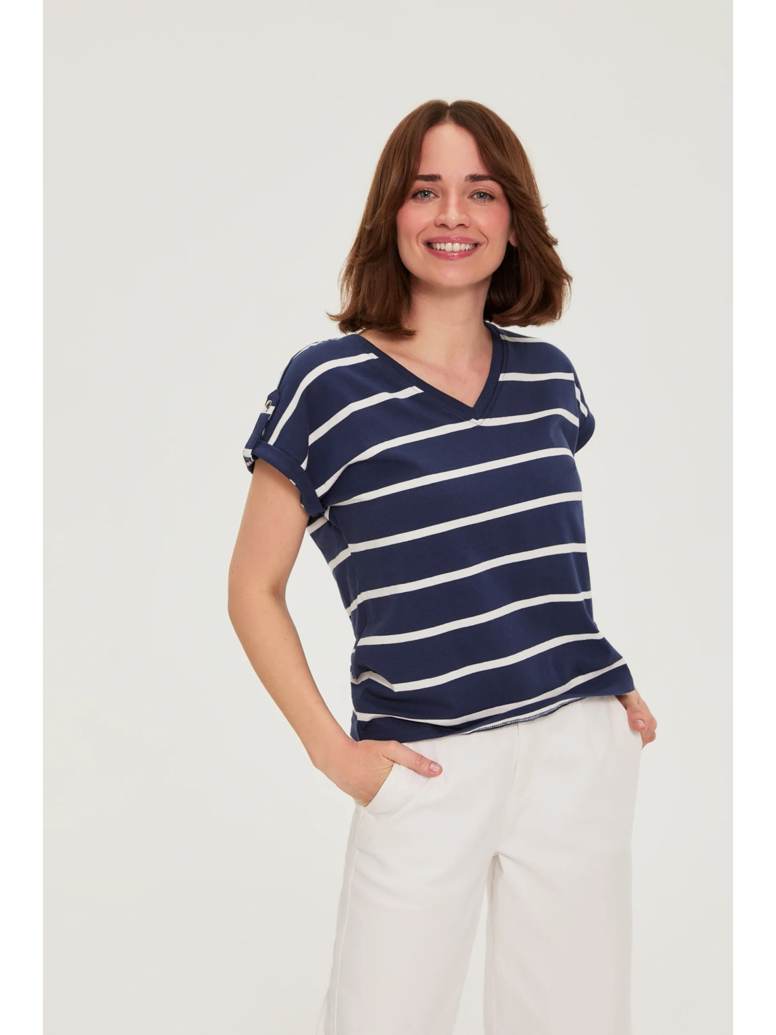 Pamut blúz V-nyakkivágással fehér Moodo