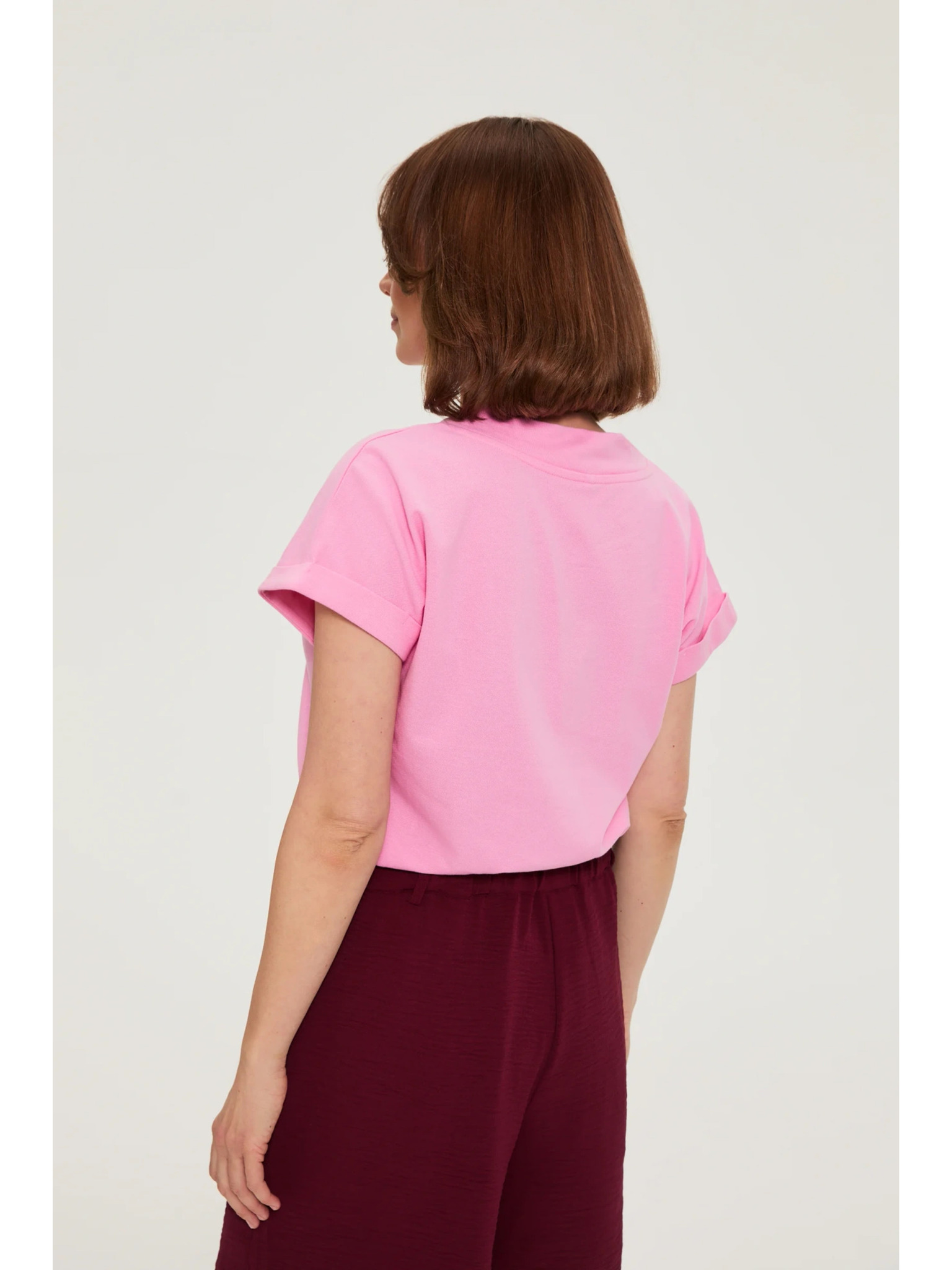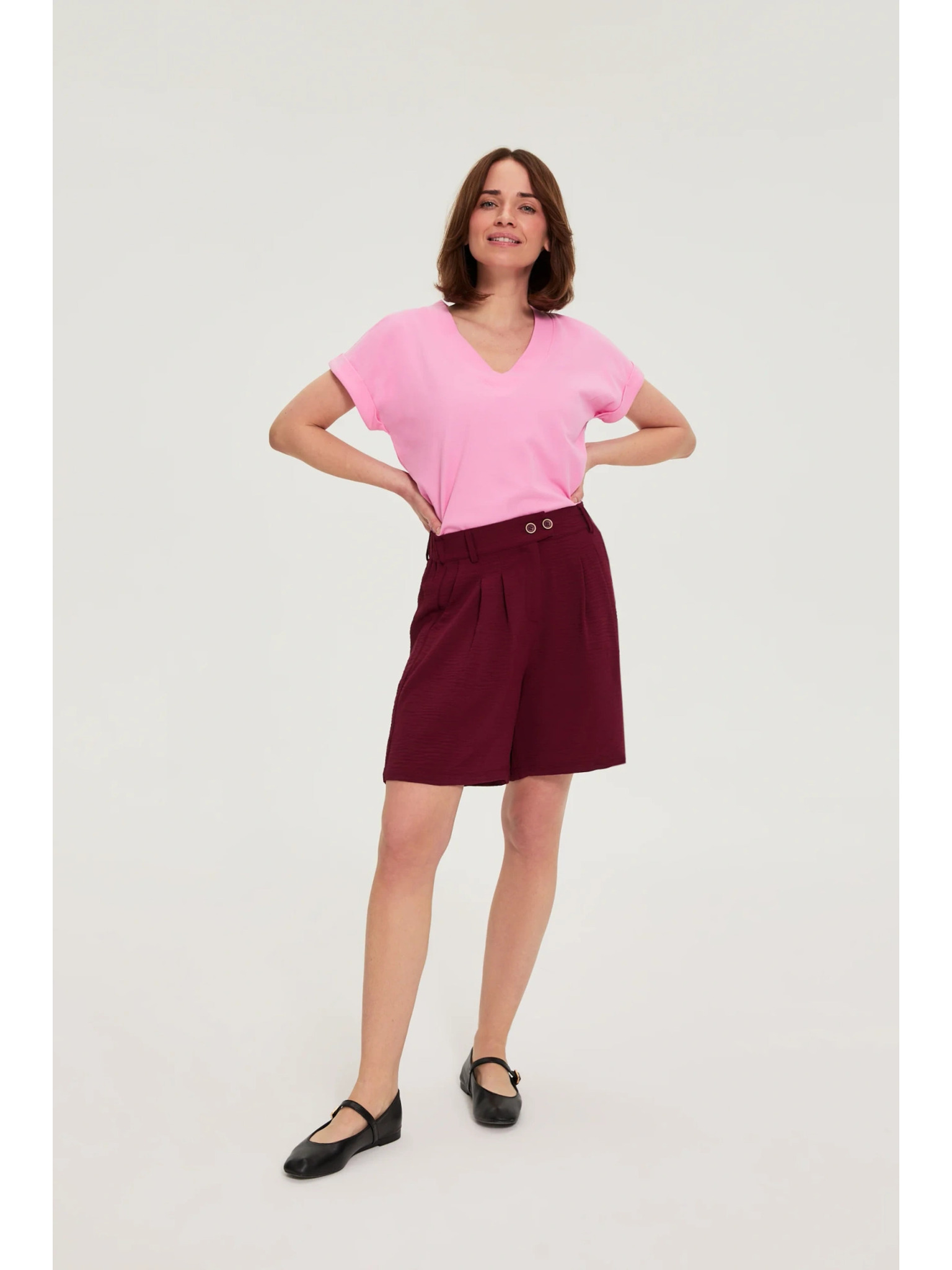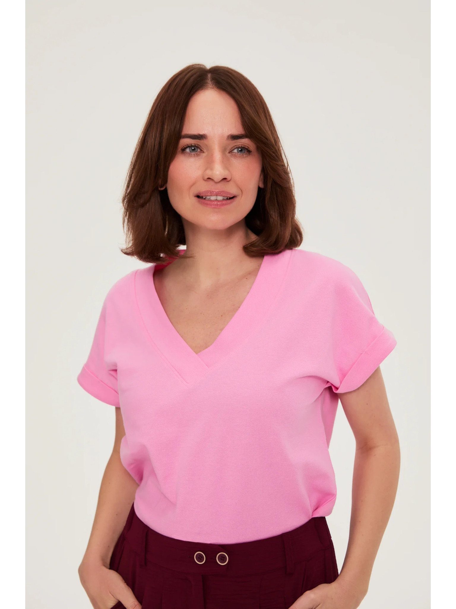 Pamut blúz V-nyakkivágással rózsaszín Moodo