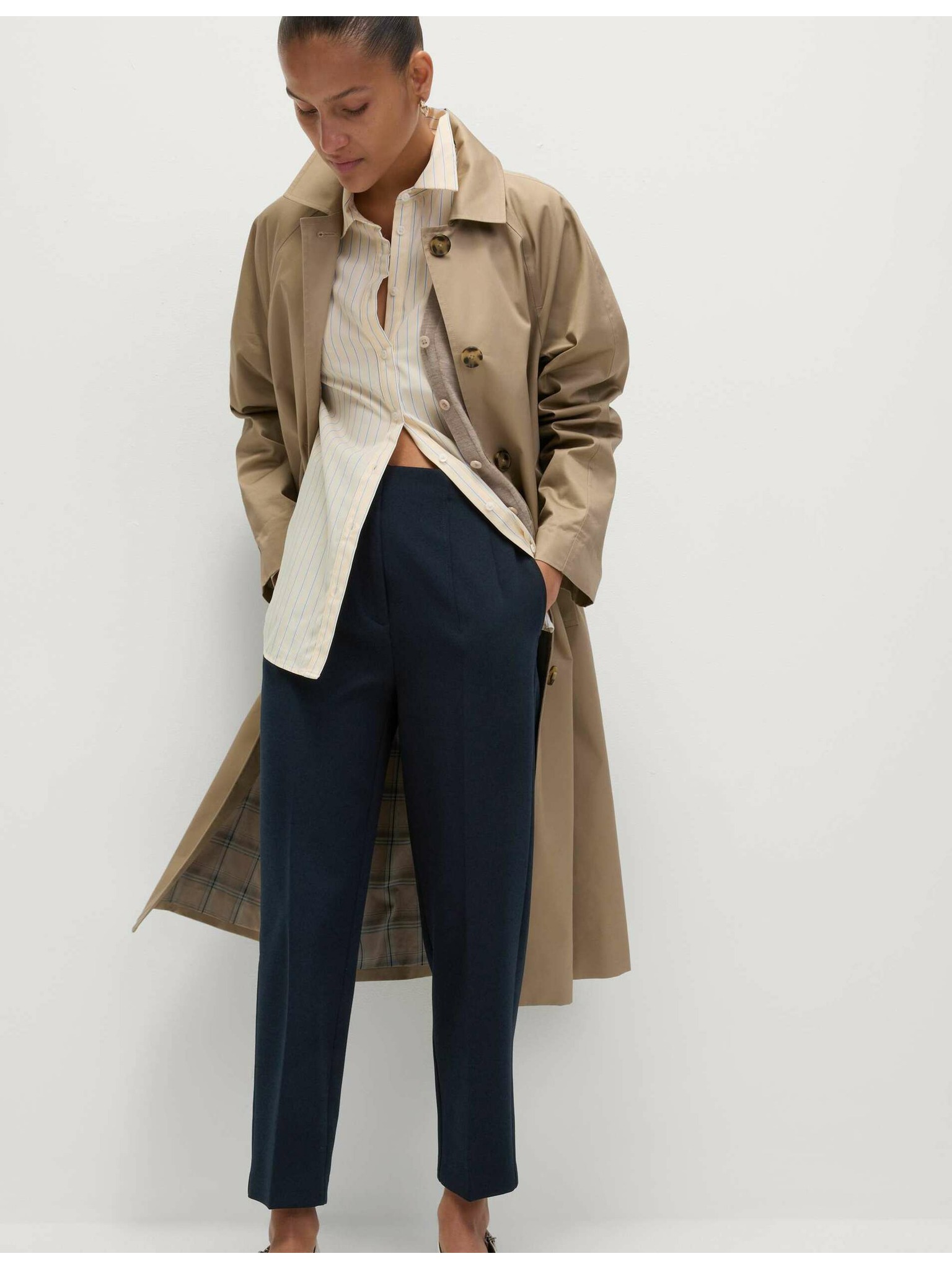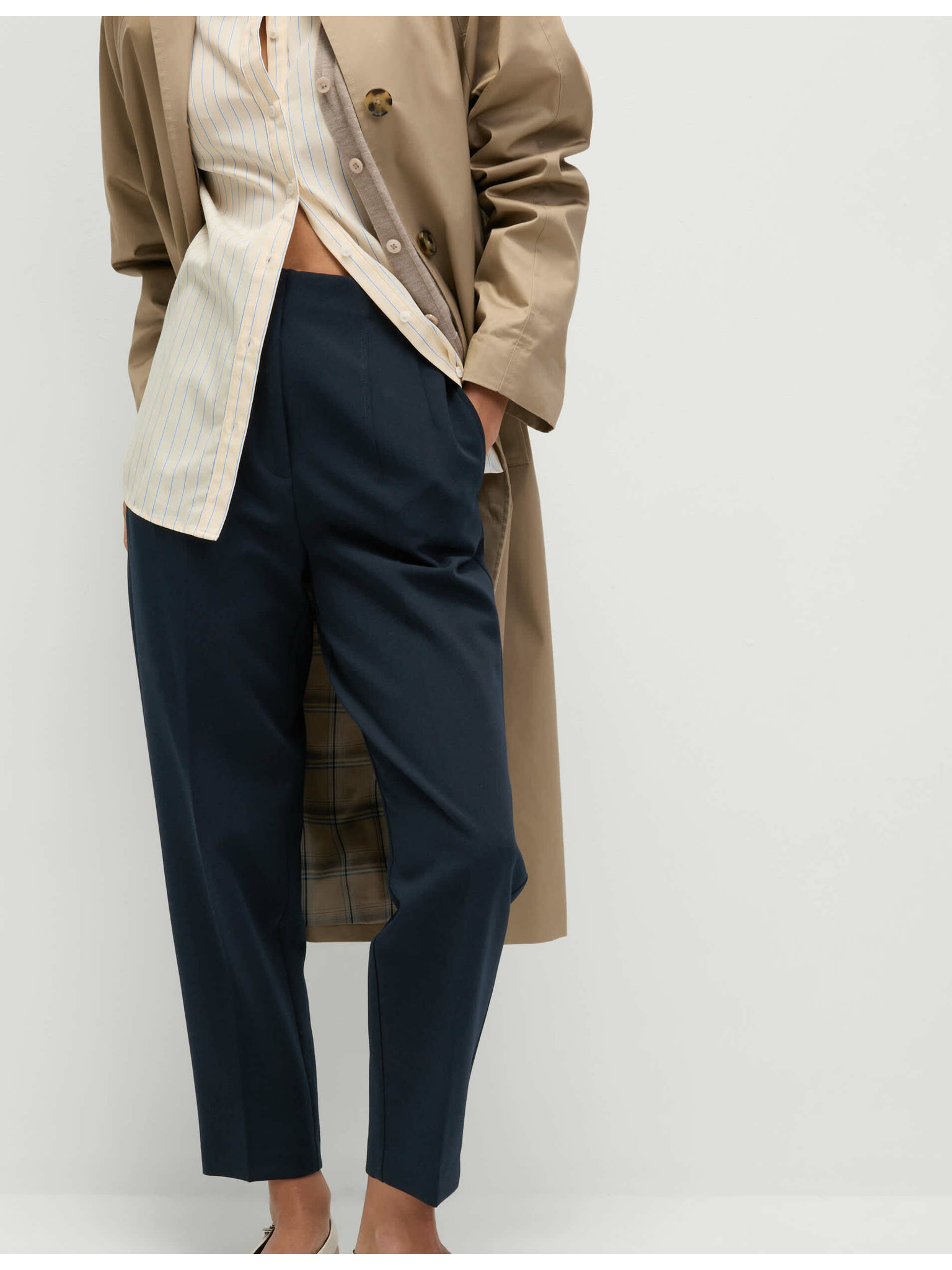 Ráncolt nadrág széles szárral és tű csíkozással Marks & Spencer sötétkék
