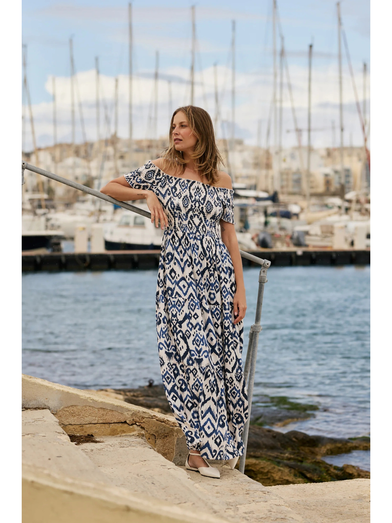 Hosszú viszkóz ruha fehér Moodo