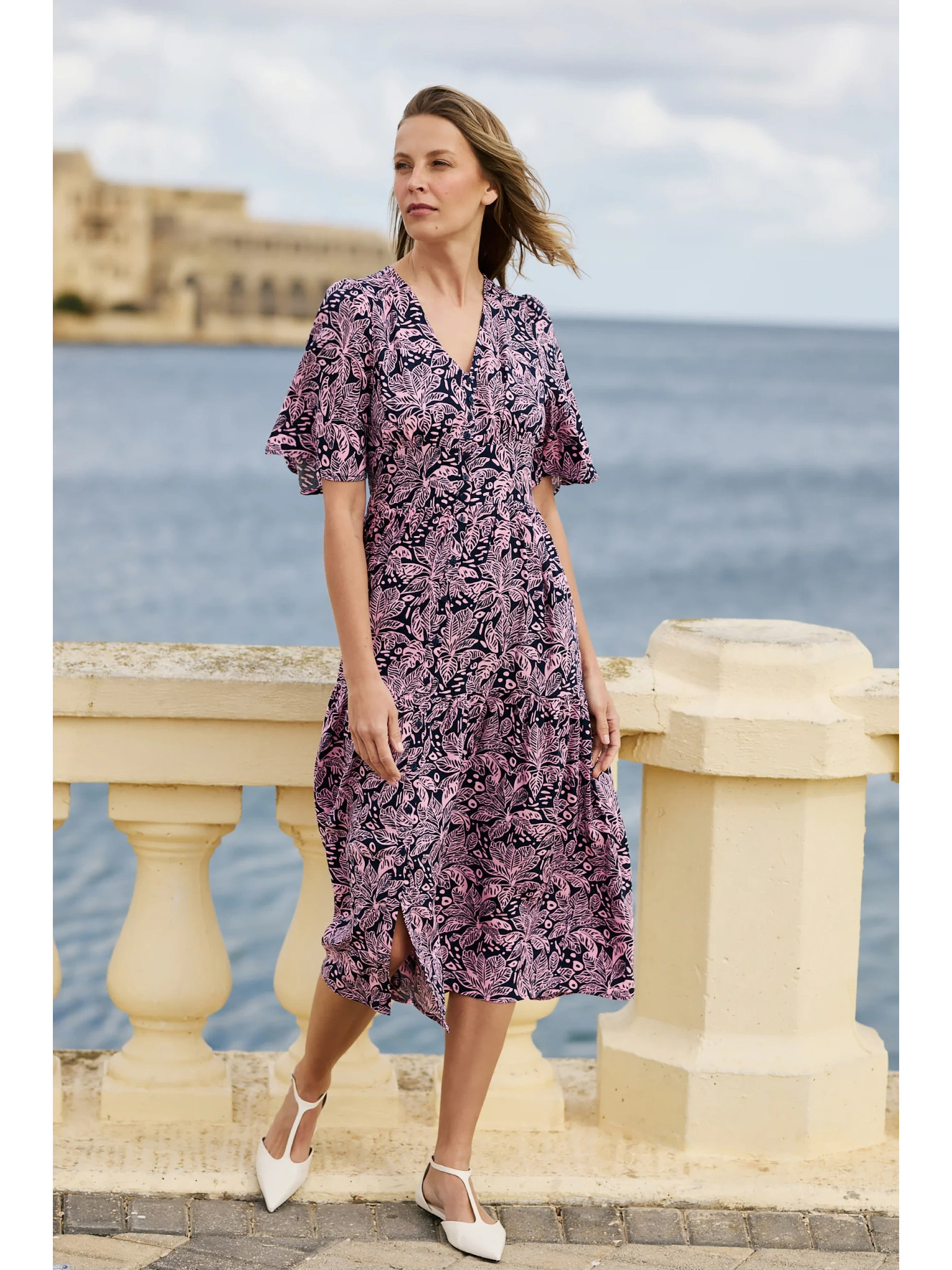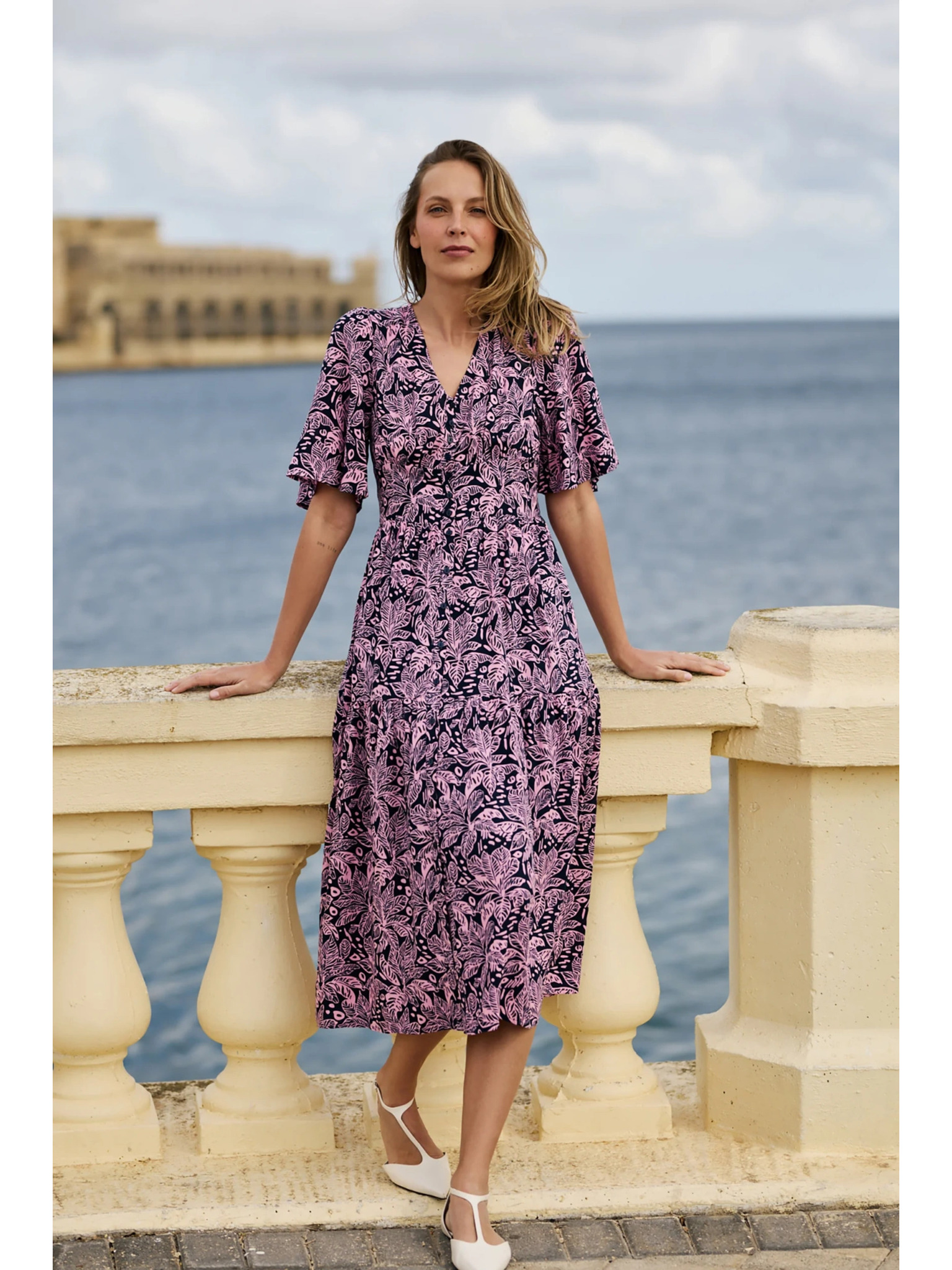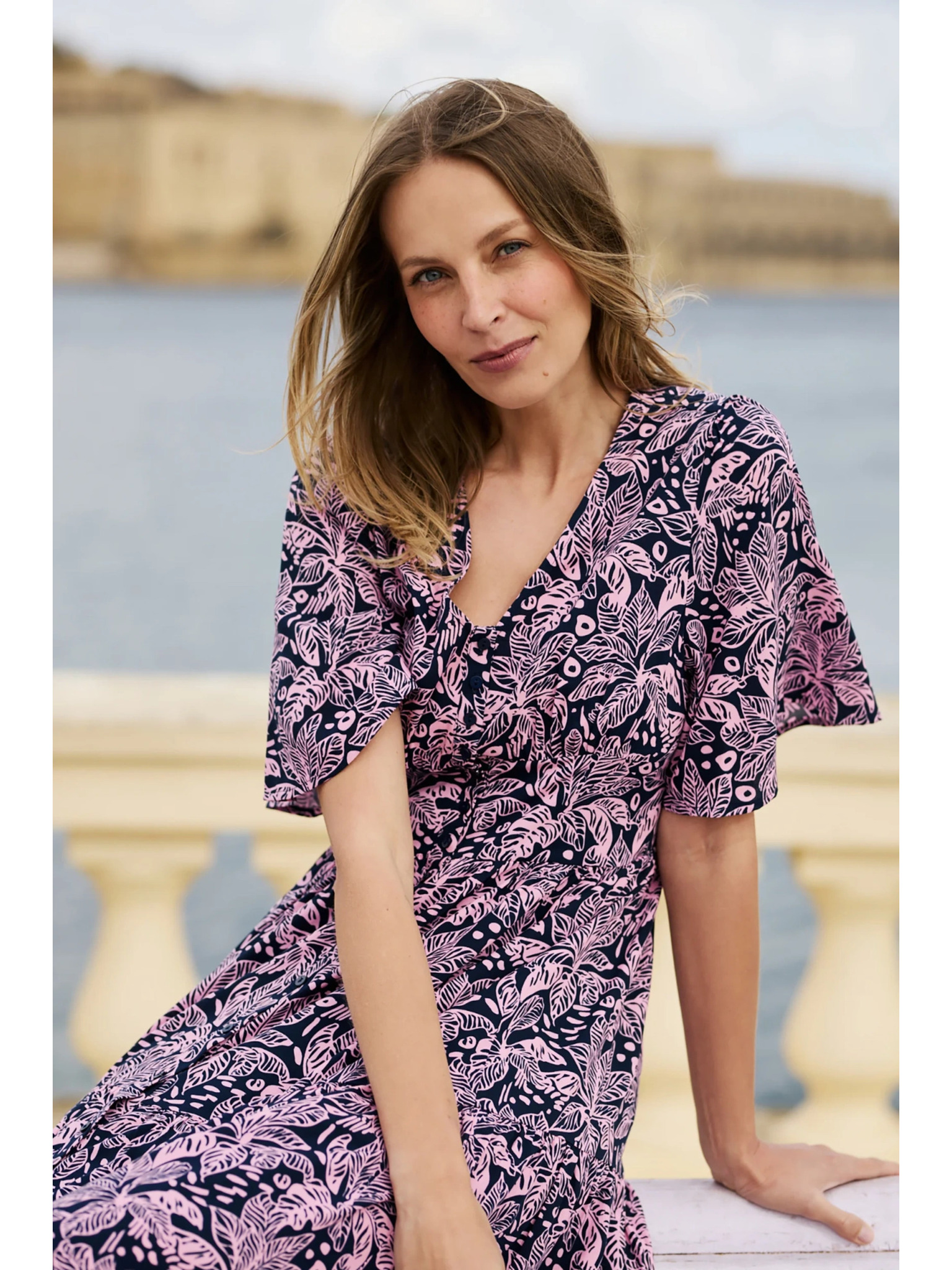 296-13 VICTORIA Boho ruha trapéz mintával és mediterrán nyomattal