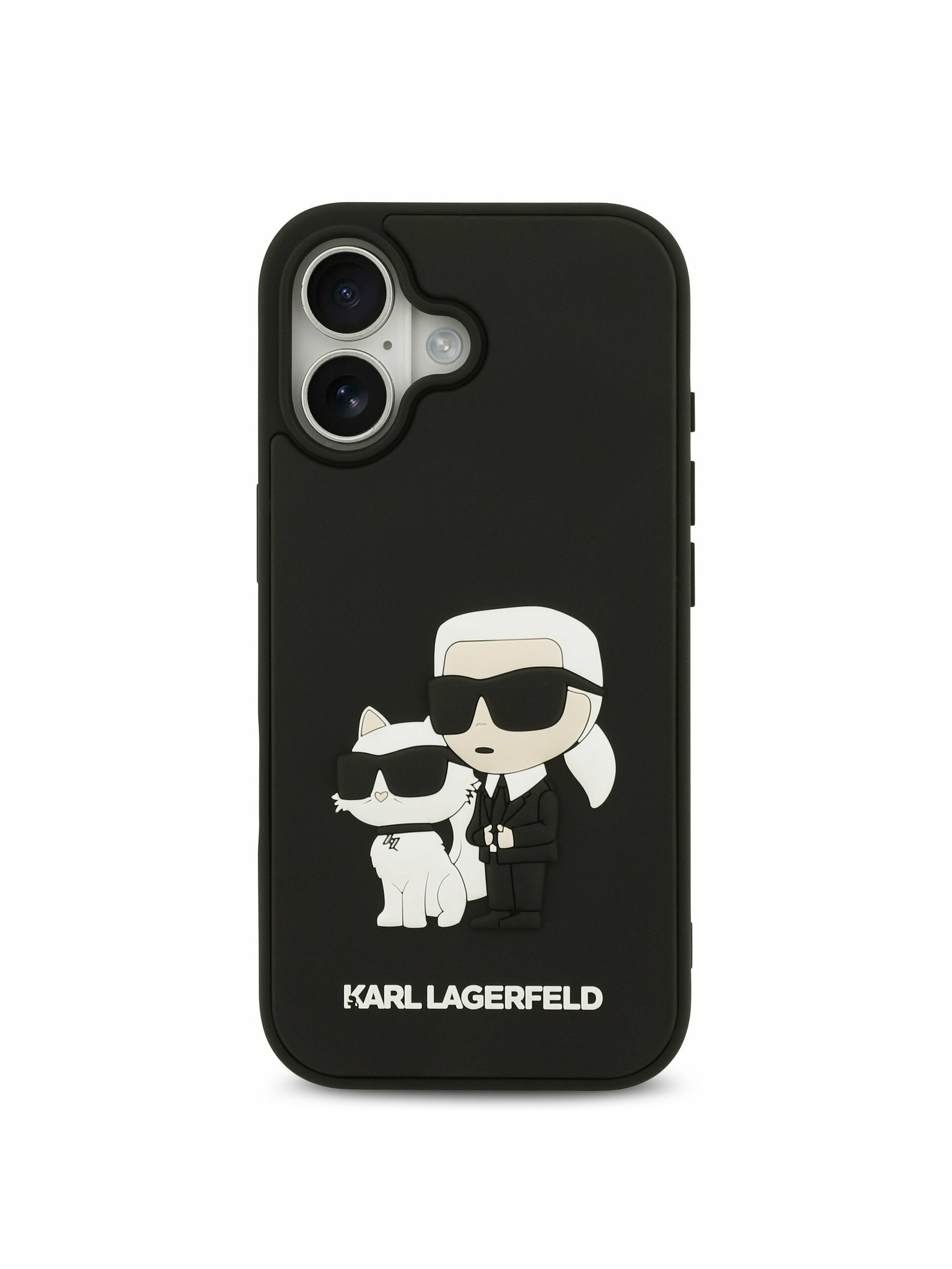 Karl Lagerfeld 3D Gumi Karl és Choupette Hátsó Tok iPhone 17-hez Fekete
