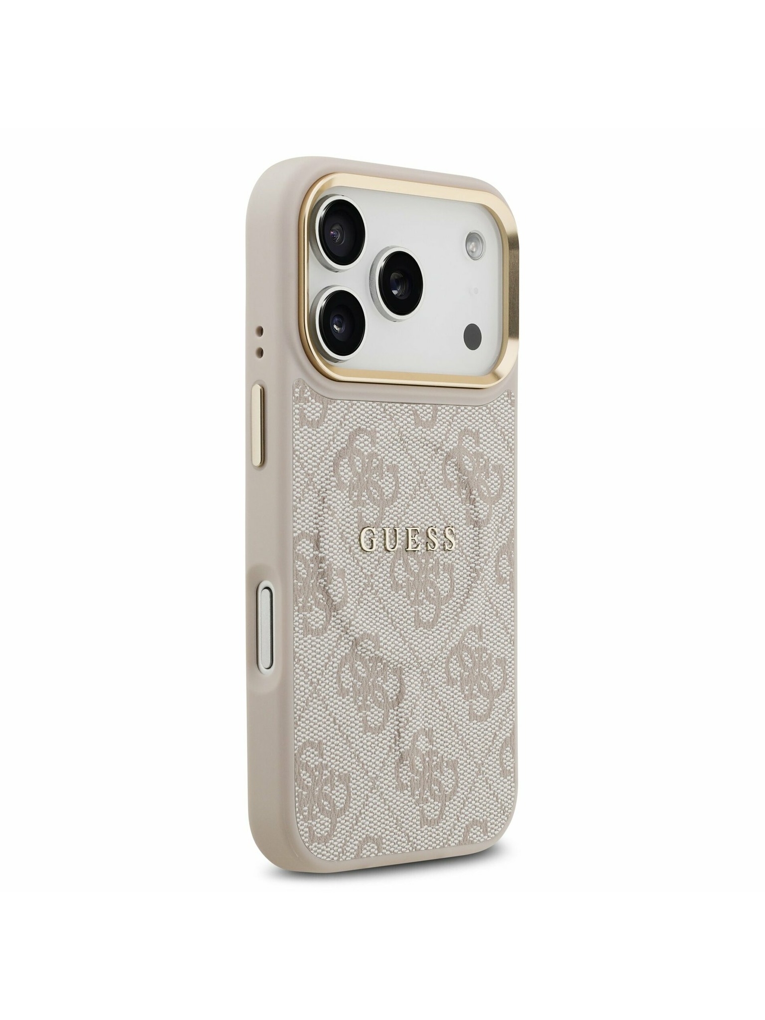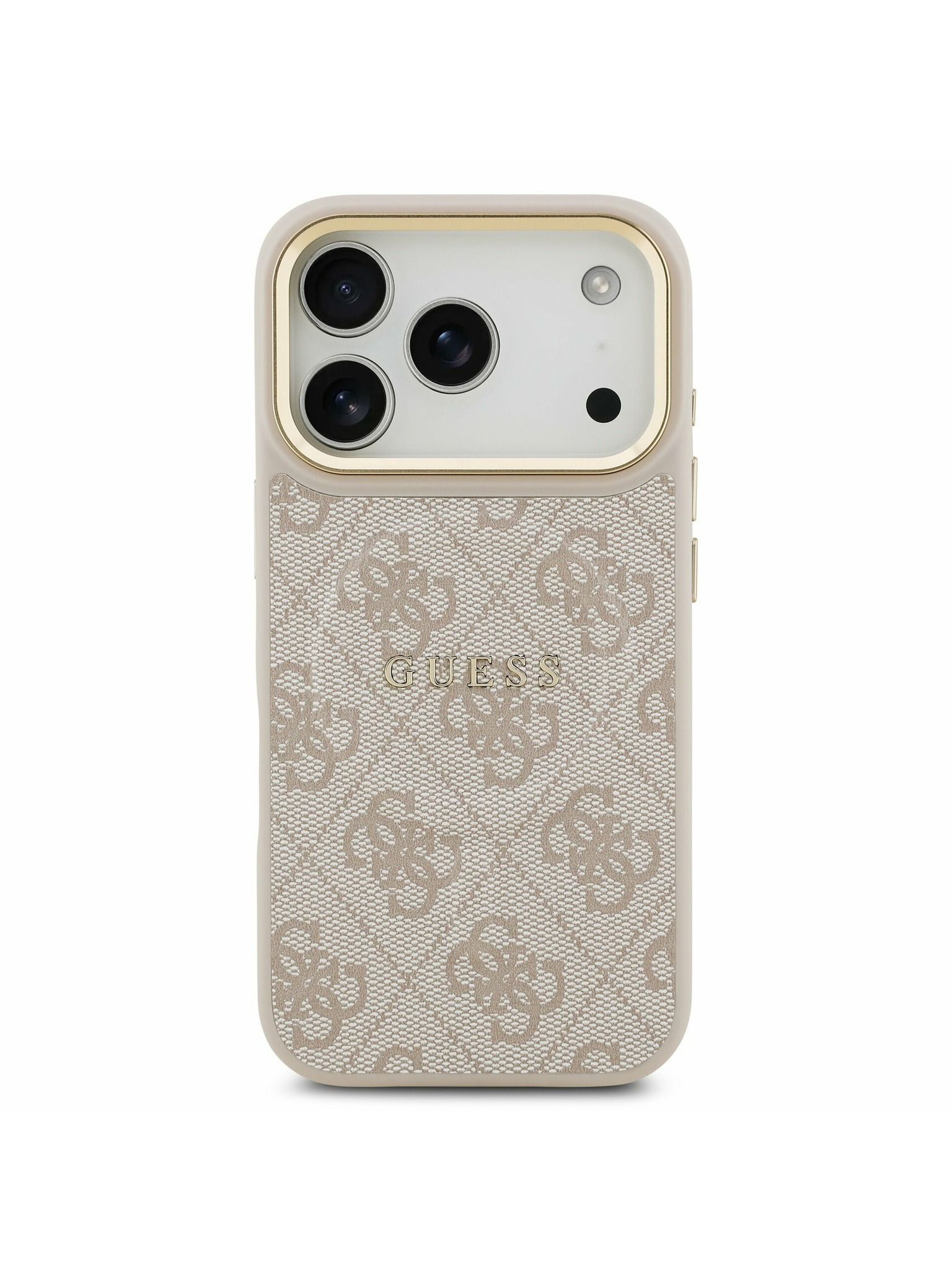 Guess PU Érdes 4G Logo Álló Kamera Keret Hátlap iPhone 15 Pro-hoz Barna
