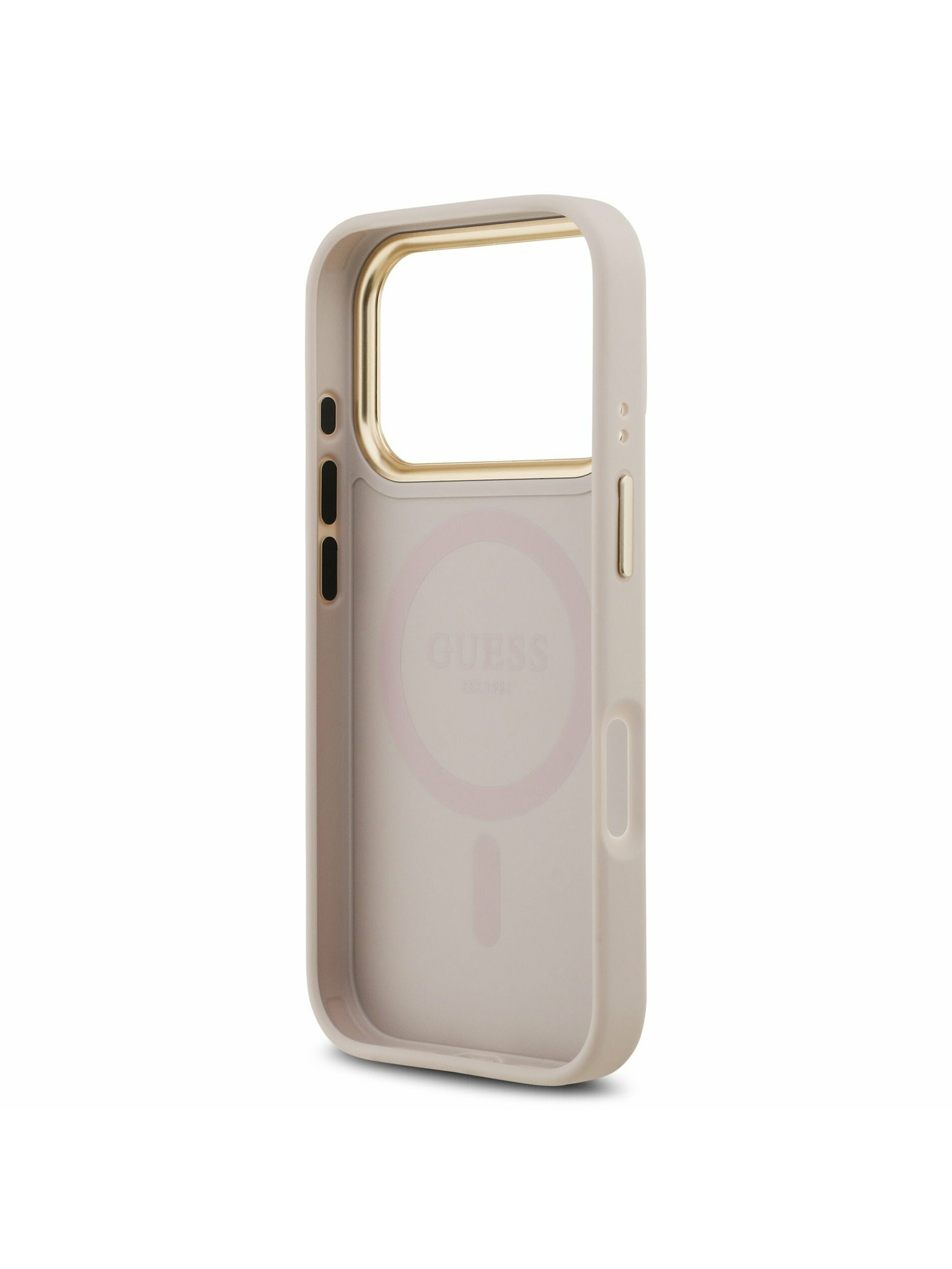 Guess IML Gold Outline Stand Camera Frame MagSafe Hátlap iPhone 15 Pro-hoz Átlátszó