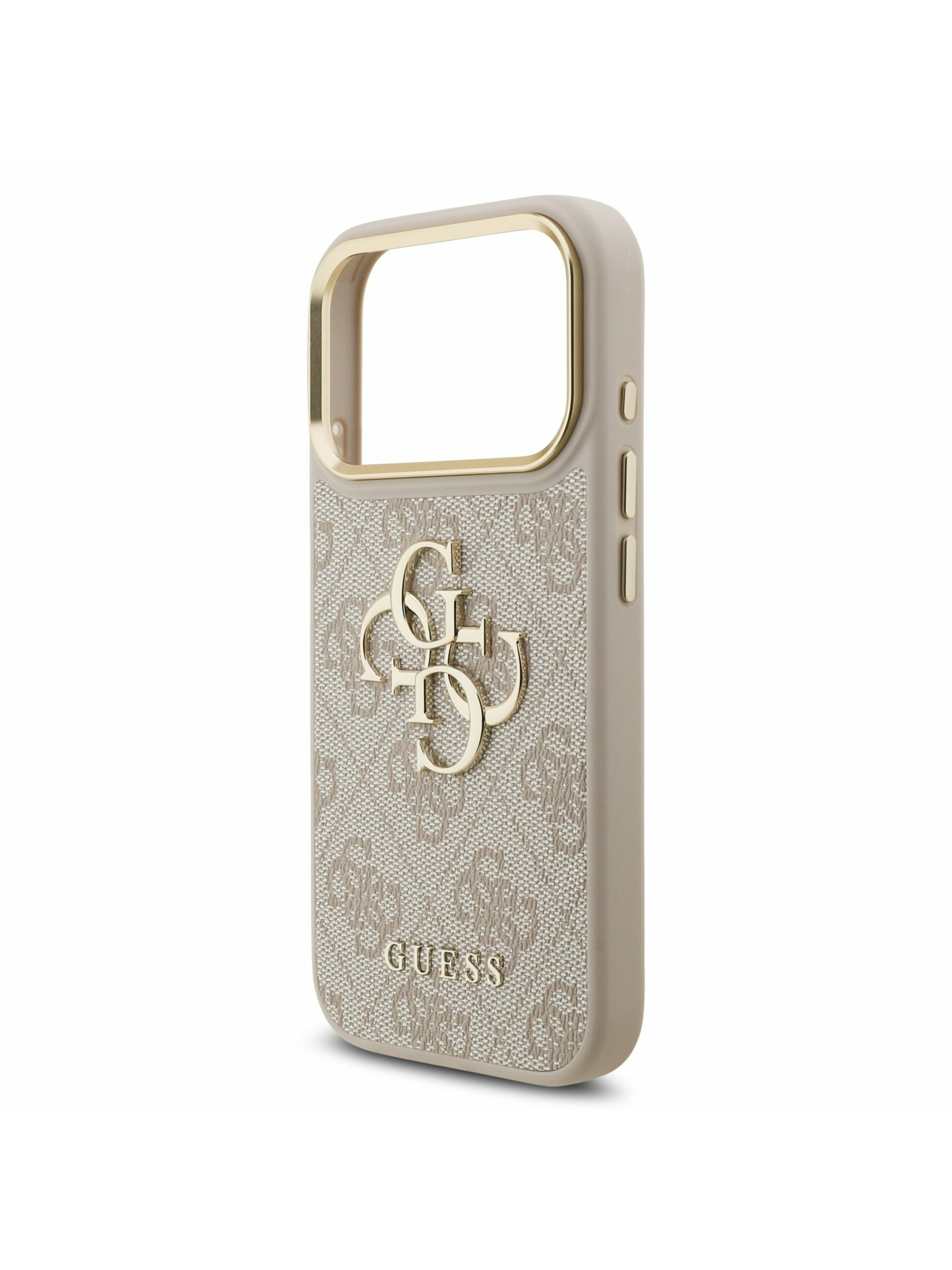 Guess PU Érdes 4G Logo Álló Kamera Keret Hátlap iPhone 15 Pro-hoz Barna