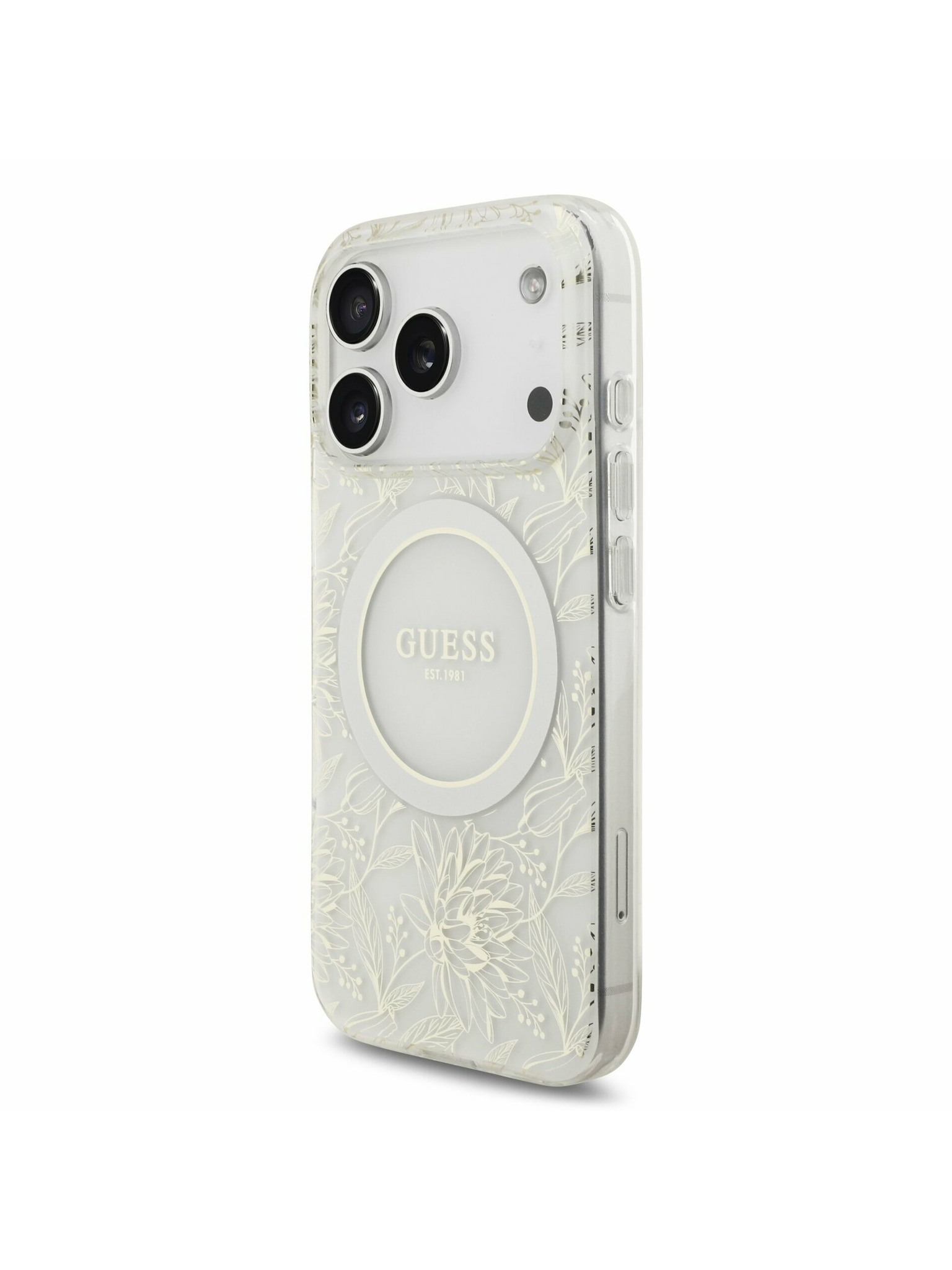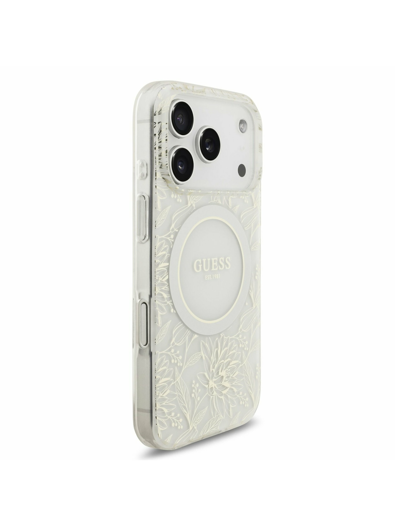 Guess IML Gold Outline Állvány Kamera Keret MagSafe Hátlap iPhone 16 Pro Max-hoz Átlátszó