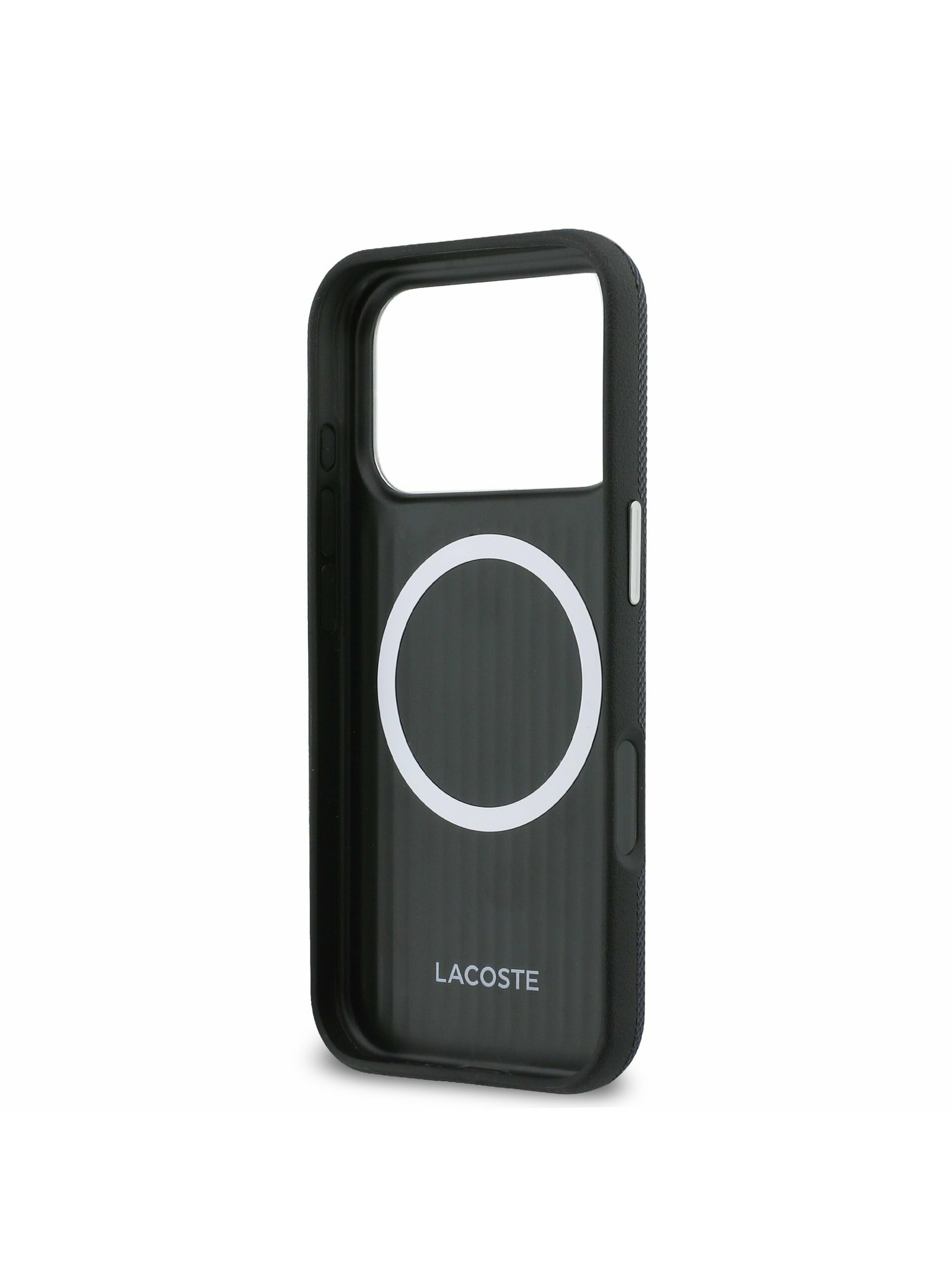 Lacoste PVC Iconic Petit Pique Metal Logo MagSafe Hátlap iPhone 17 Pro-hoz Black